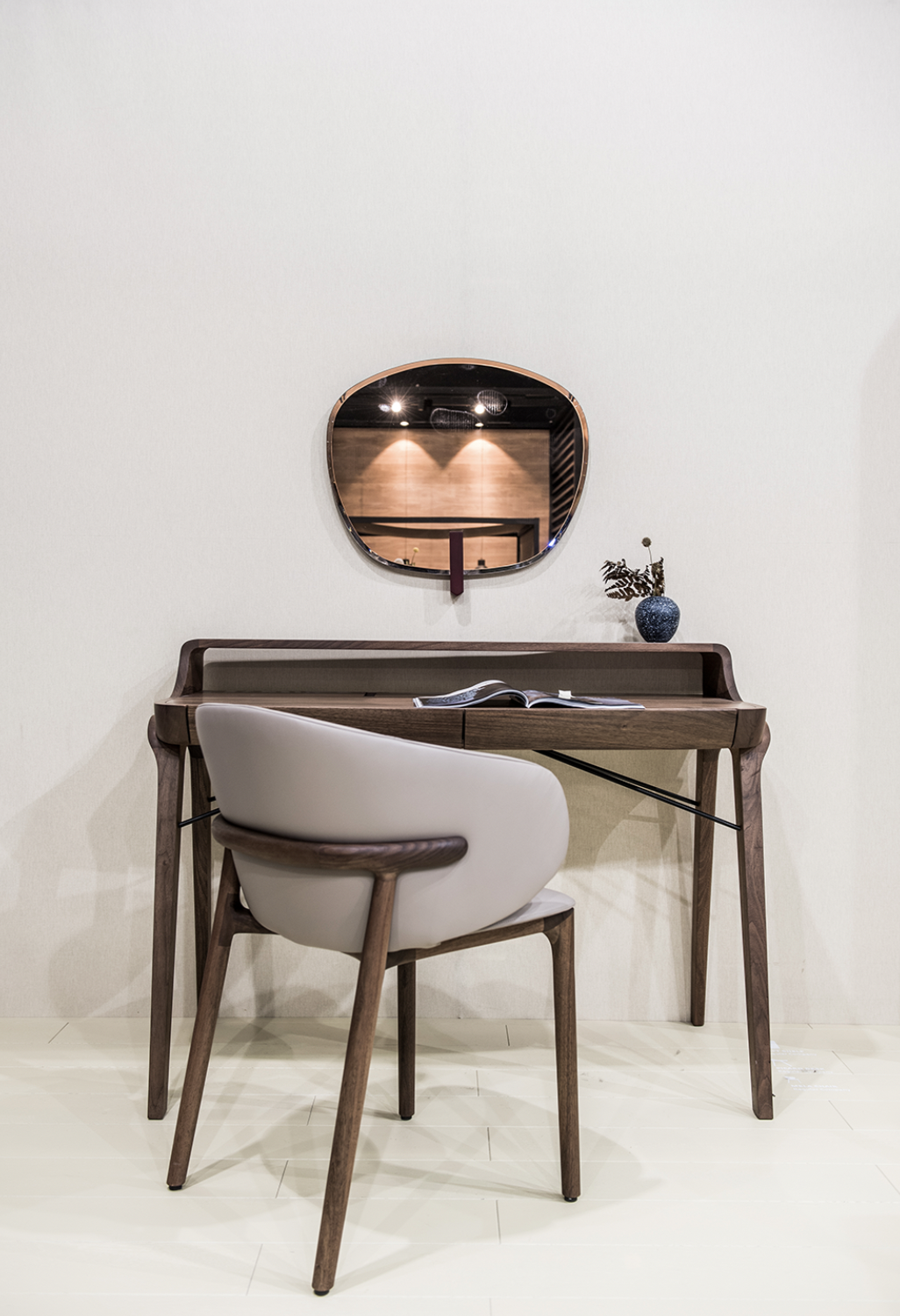 Mela är syskonstolen till Neva och finns i både valnöt och ek. Med stoppad sits och rygg ger den en skön, omfamnande komfort runt matbordet. Den eleganta designen tillsammans med det noggranna hantverket gör Mela till en lyxig stol som håller i många år.