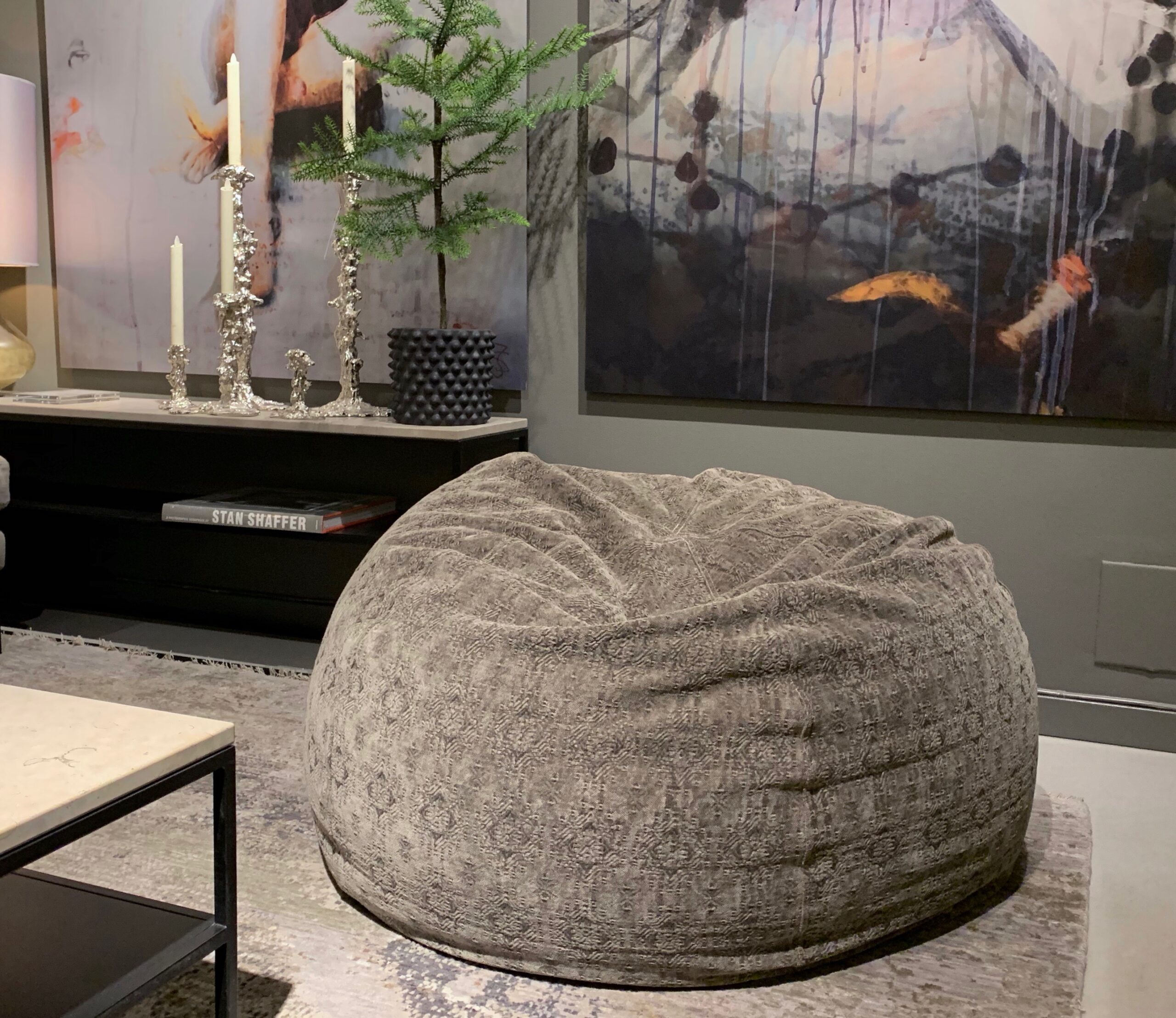 Stentvättad sittpuff. Finns att välja på flera olika tyger och mönster.