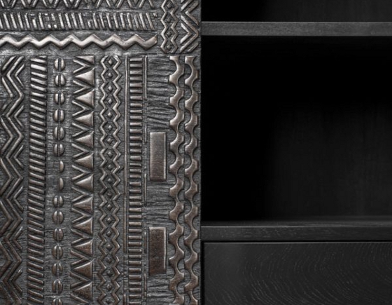 Kollektionen ’Ancestors’ är inspirerad av Tabwa kulturen i centrala Afrika som är kända för sin geometriska estetik. Kollektionen har tidlösa drag såsom en minimalistisk siluett. Det som blir distinkt och unikt med möbeln är dess dörrar som har att geometrisk mönster. Detta har noggrant karvats för hand.