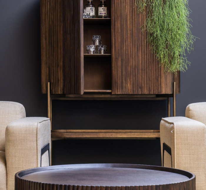 Detta skåp passar perfekt för dig som vill skapa en elegant känsla hemma. Den är tillverkad av Minditrä och har en kaffeliknande färg. Tack vare de runda mjuka formerna och den varma tonen tillför inte bara skåpet förvaring, även en mjuk känsla.