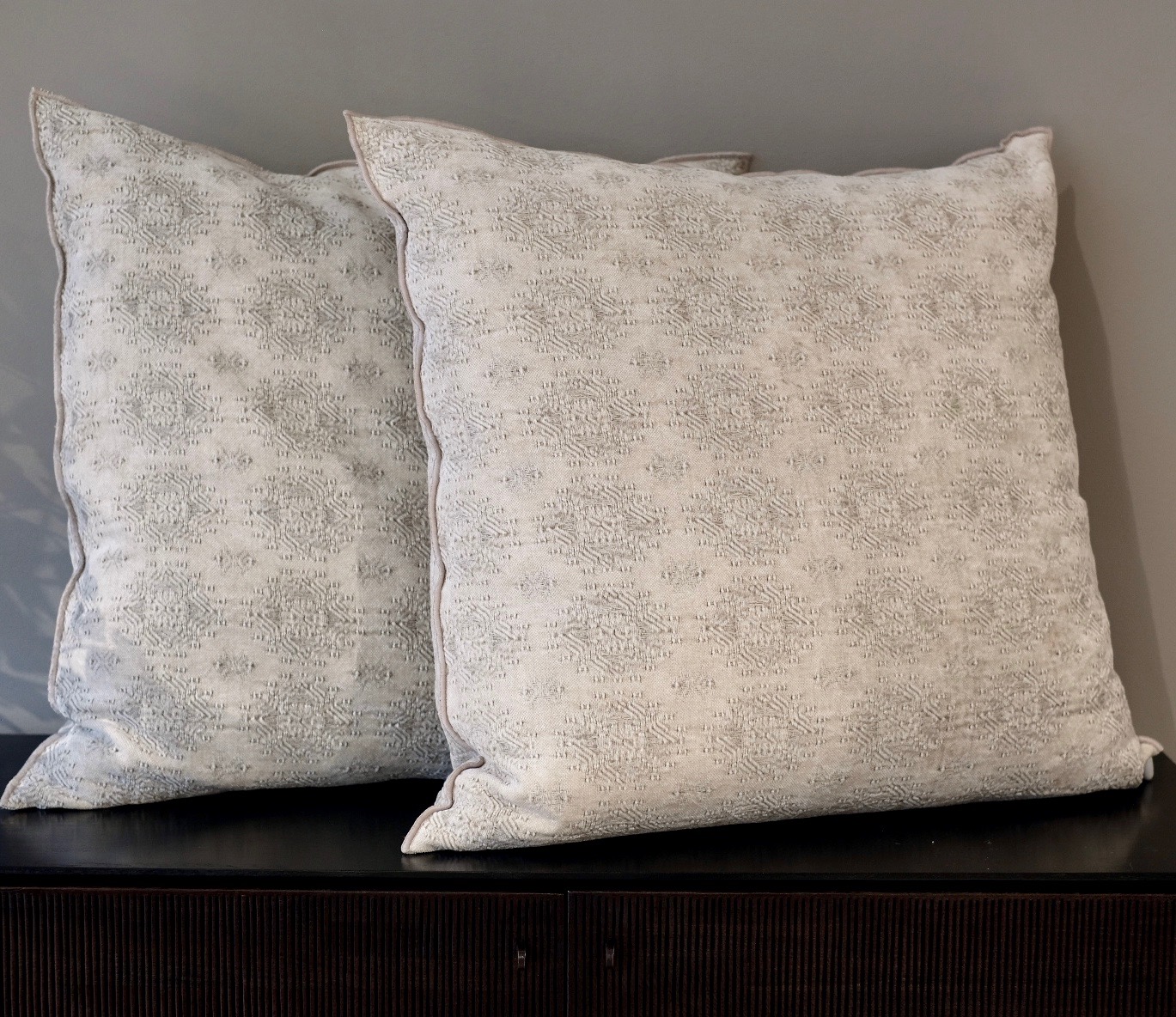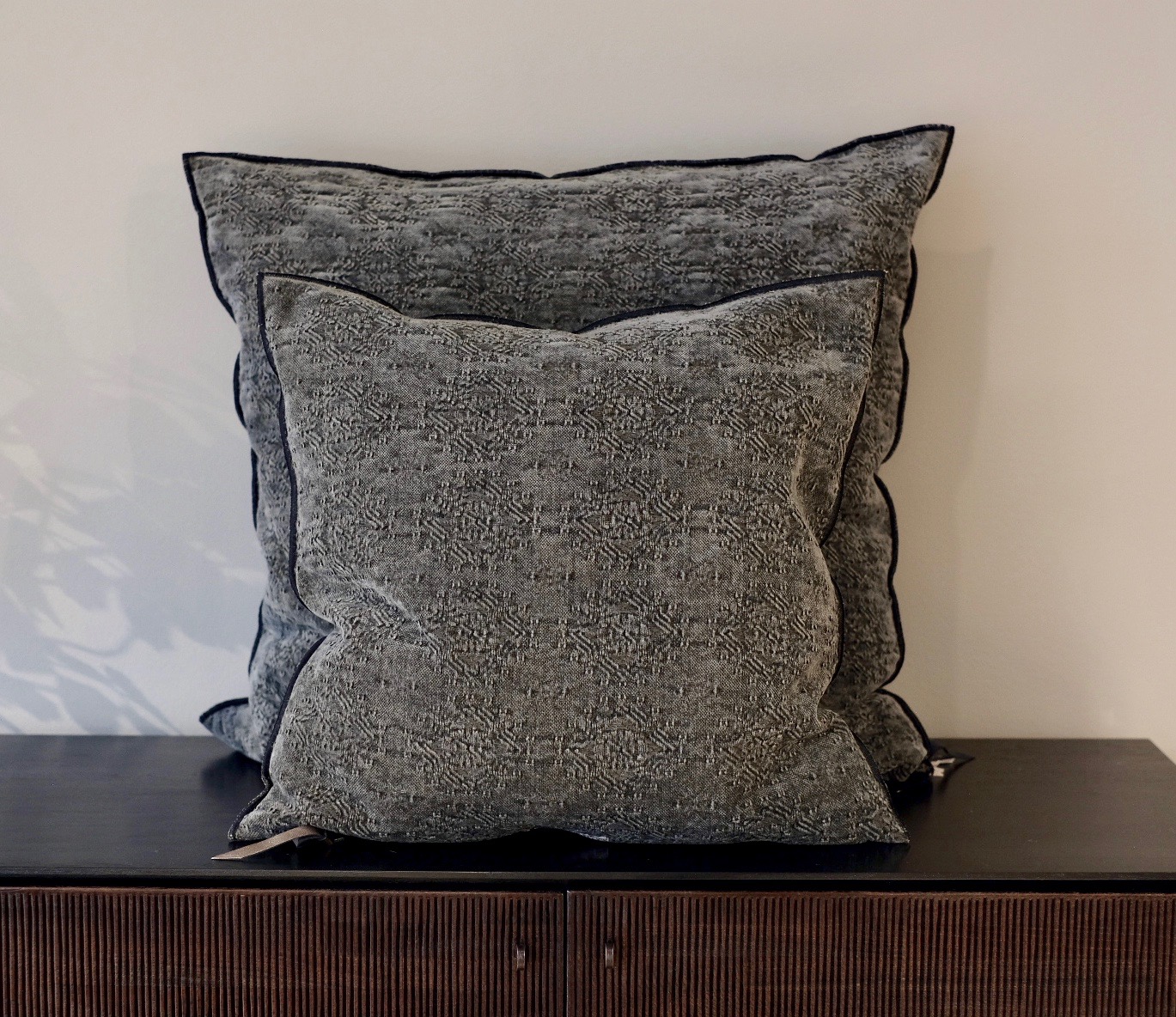 Kuddar i stentvättad chenille med jacquardmönster.