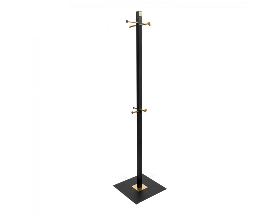 Klädhängare formgiven av Ulf Scherlin. En elegant tamburmajor i svartlackerat stål och åtta krokar i mässing.